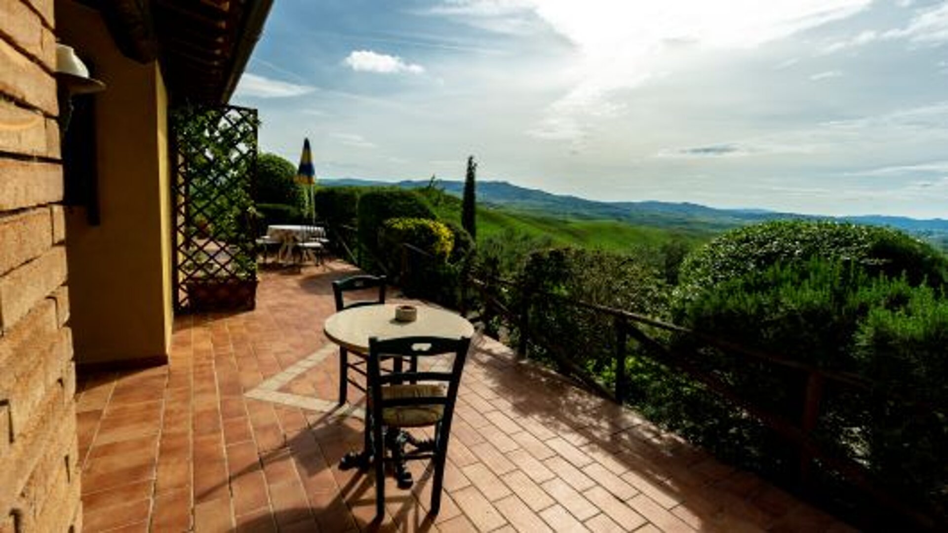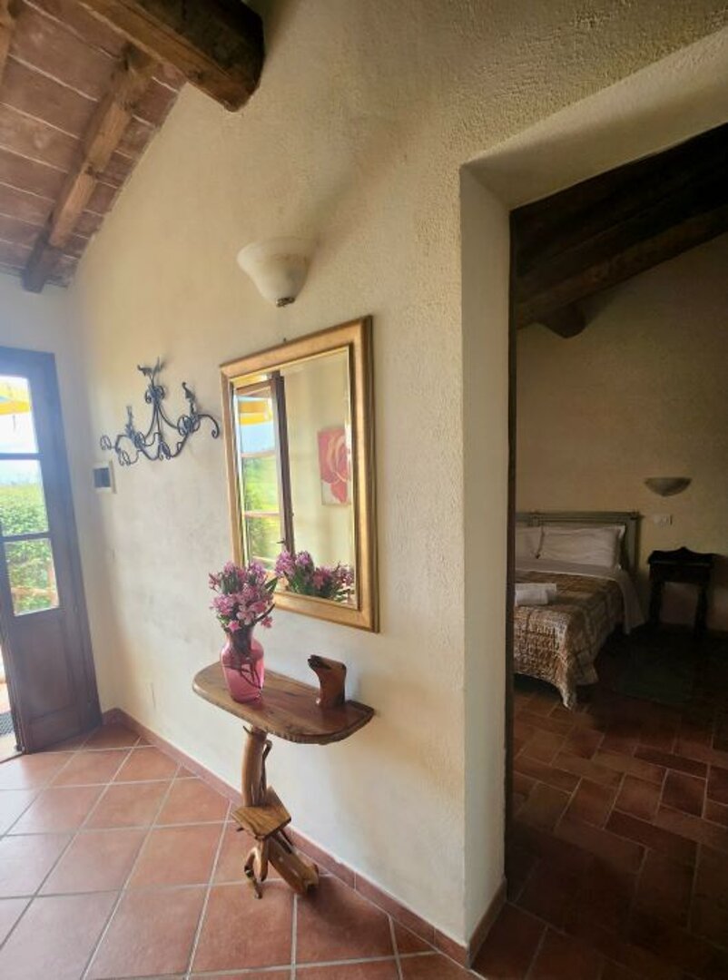 This independent apartment with private outdoor terrace 15m2 with umbrella and garden furniture provides a beautiful view of the Tuscan hills.