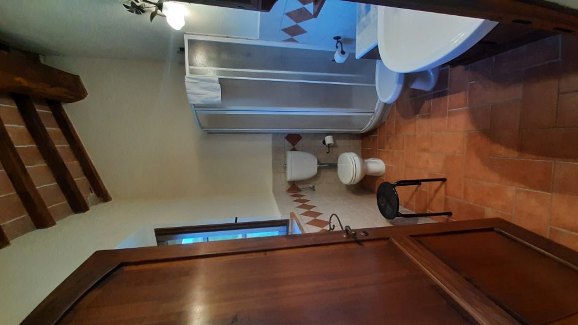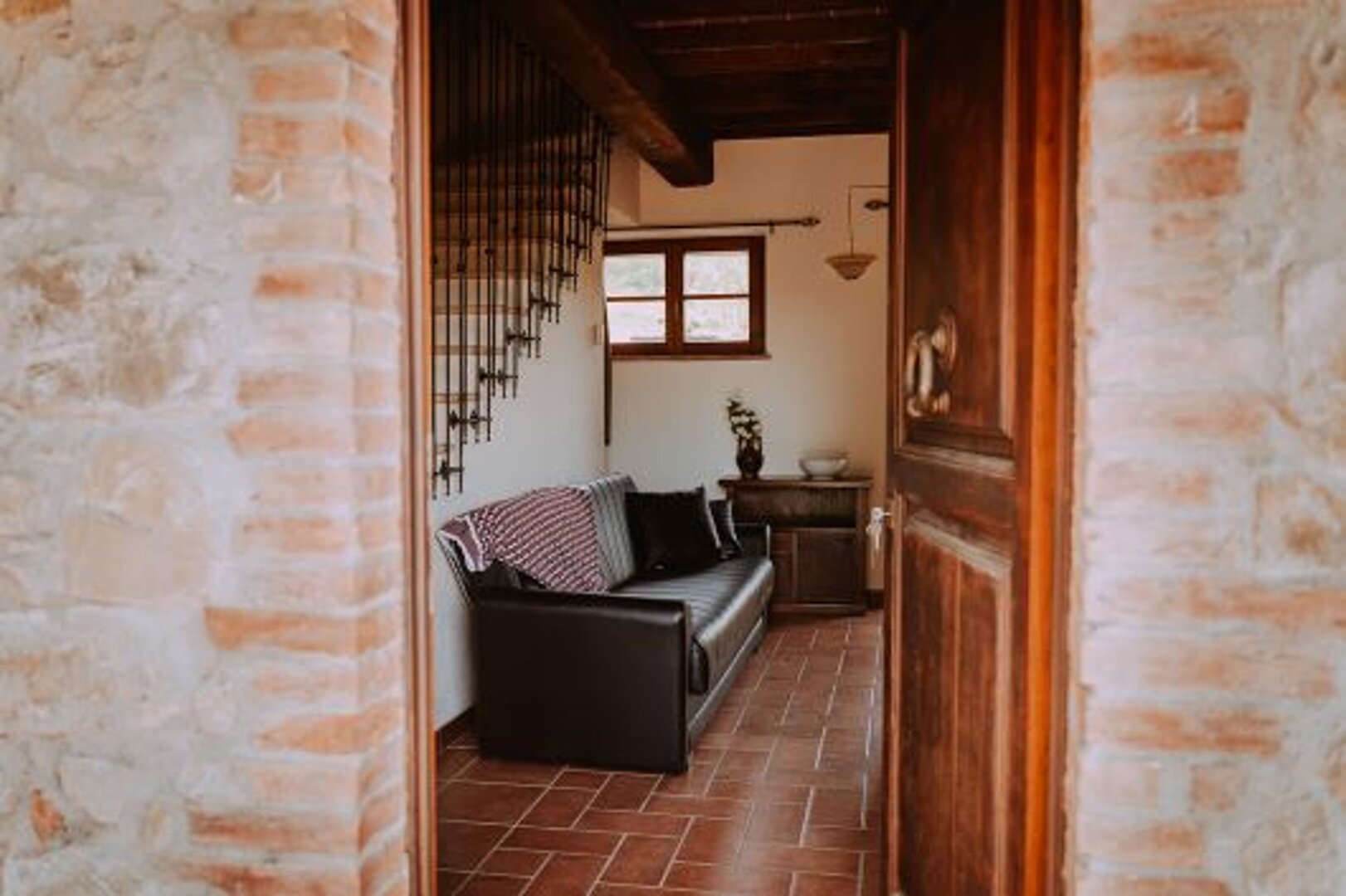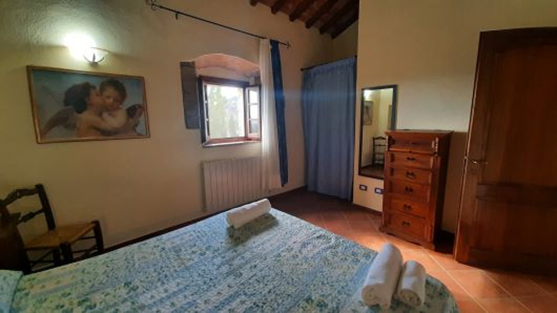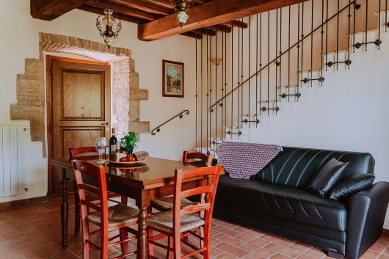 Located on the ground and first floor Rosa apt built in a typical rustic Tuscan style overlooks the gardeden and comprises of: