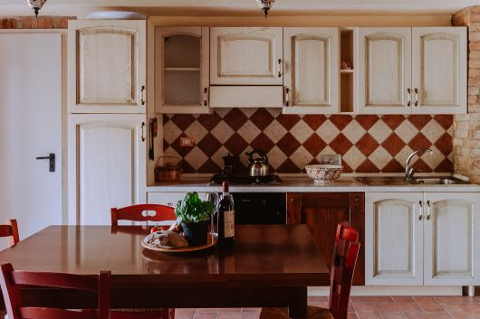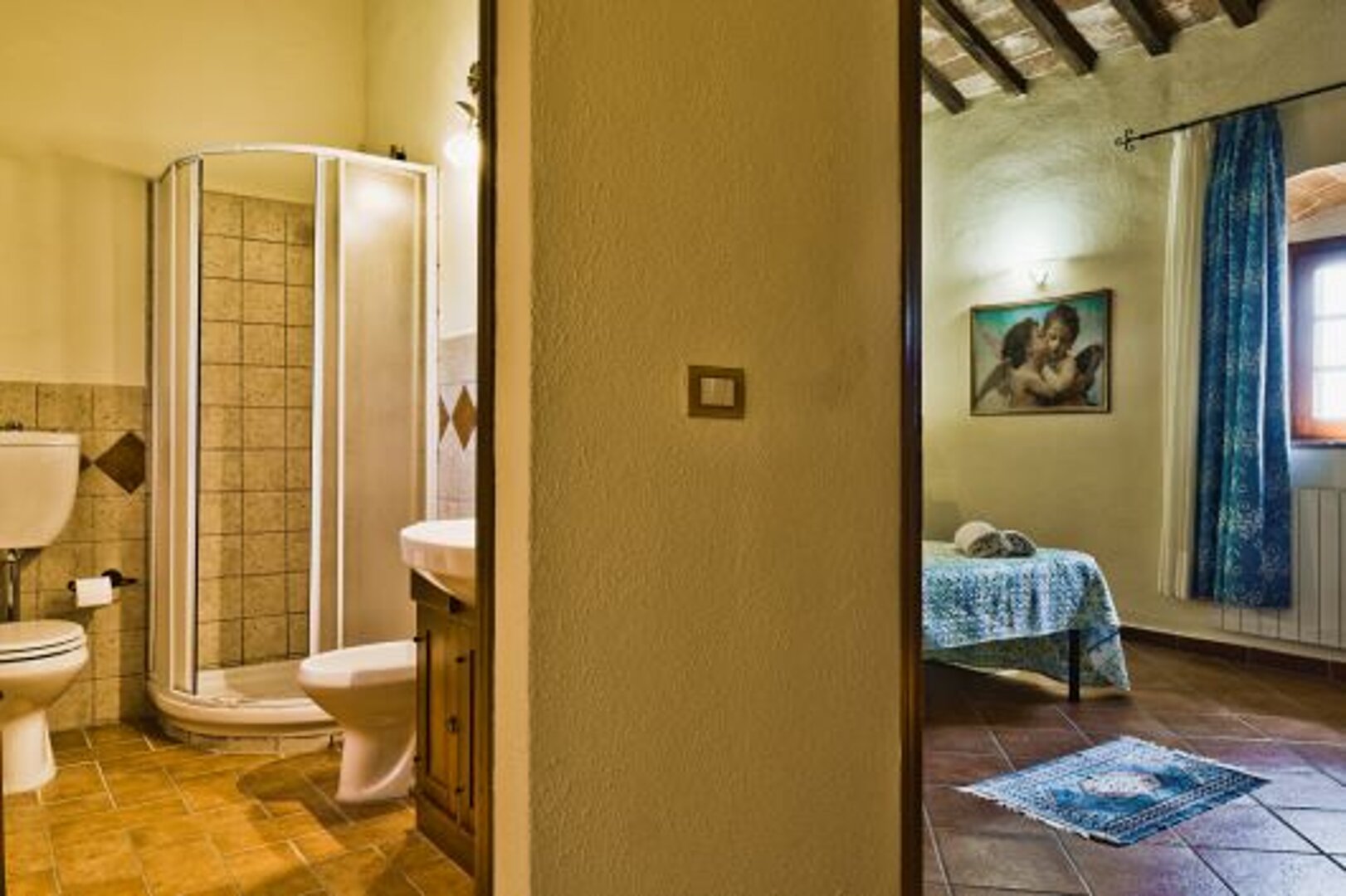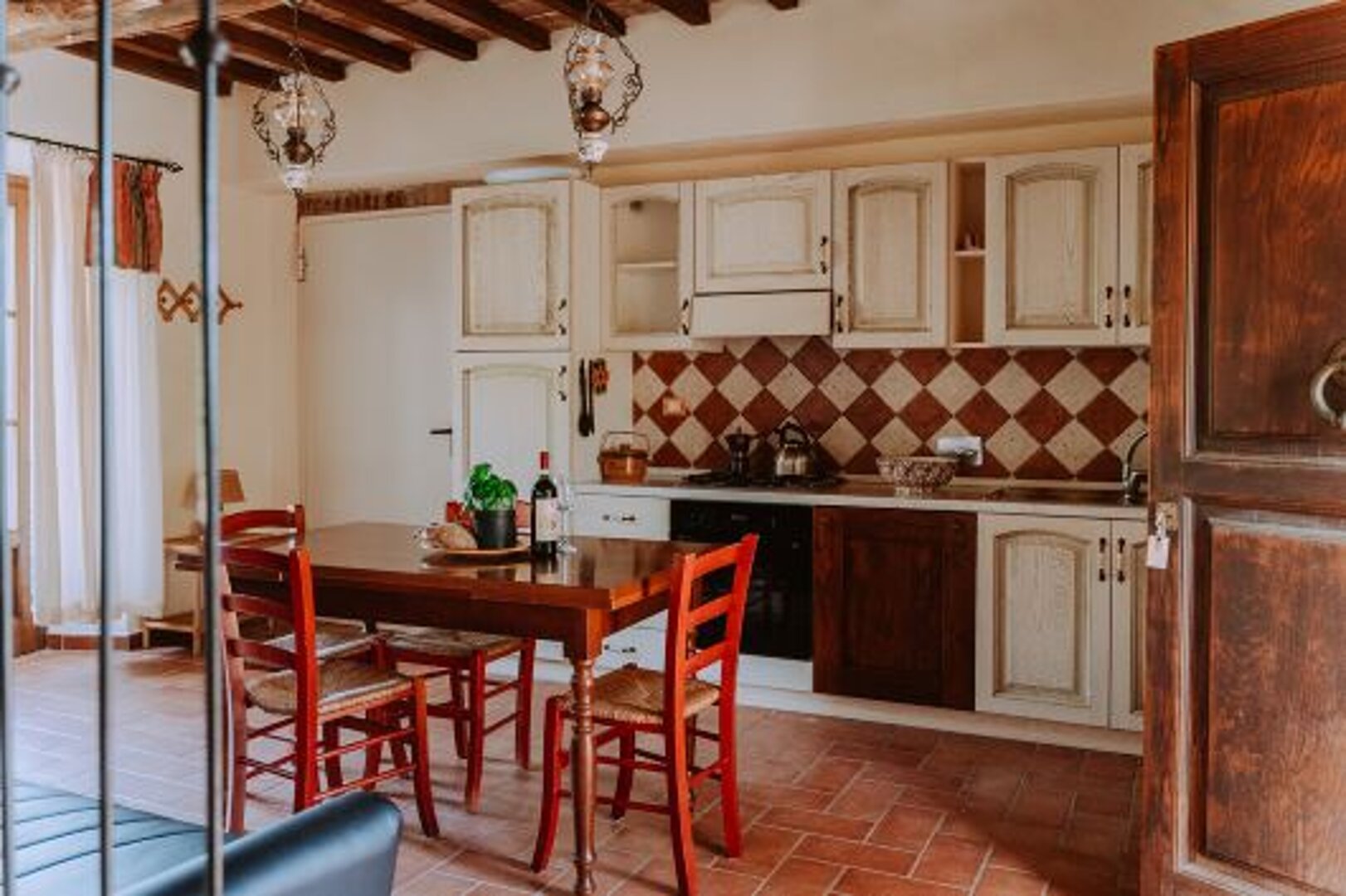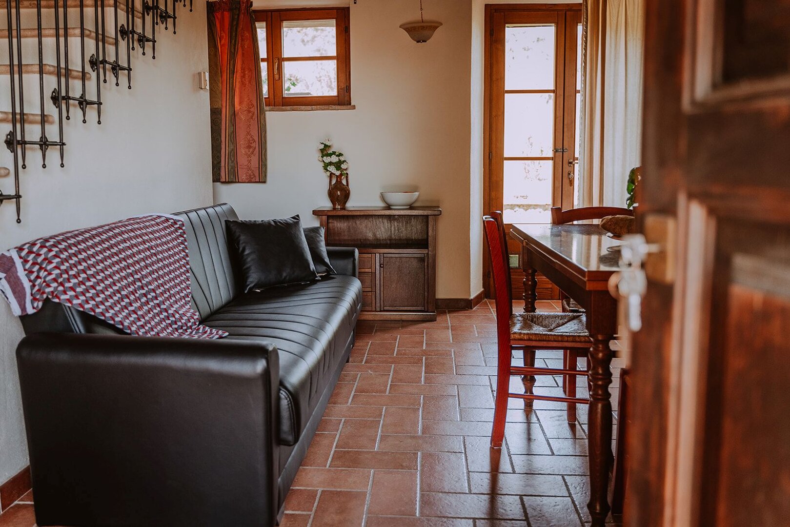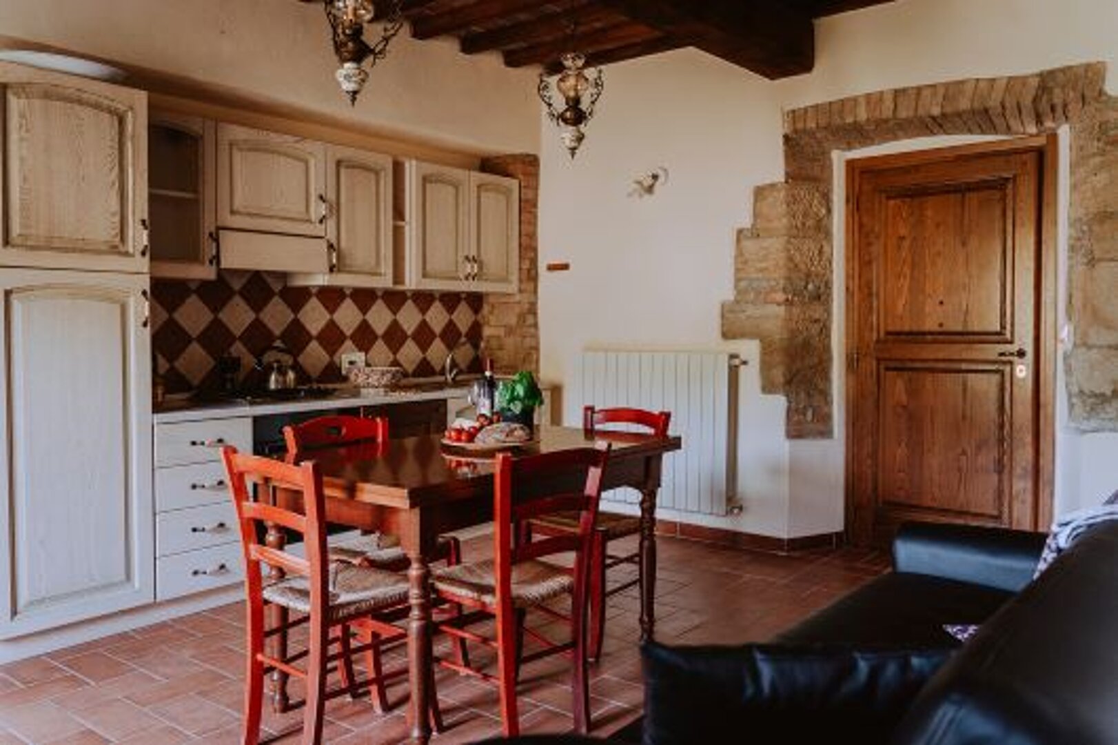 Located on the ground and first floor Rosa apt built in a typical rustic Tuscan style overlooks the gardeden and comprises of: