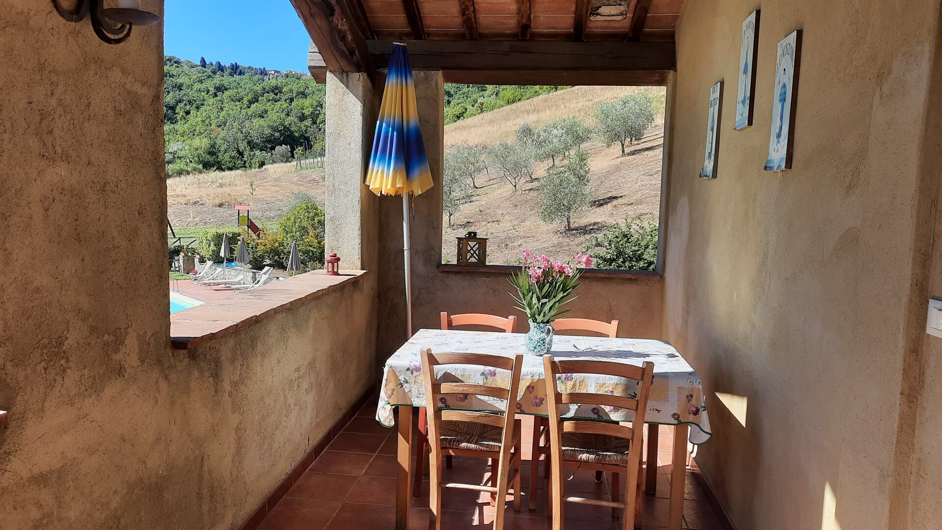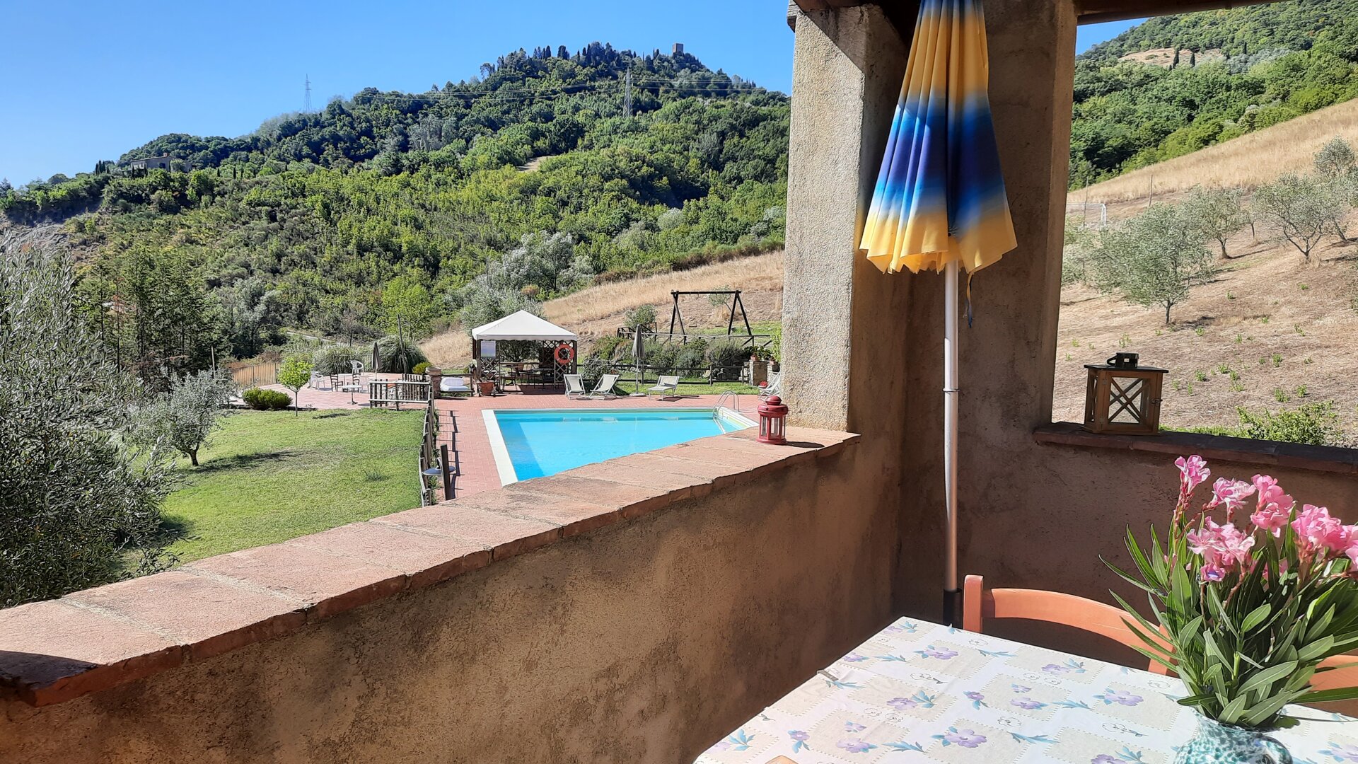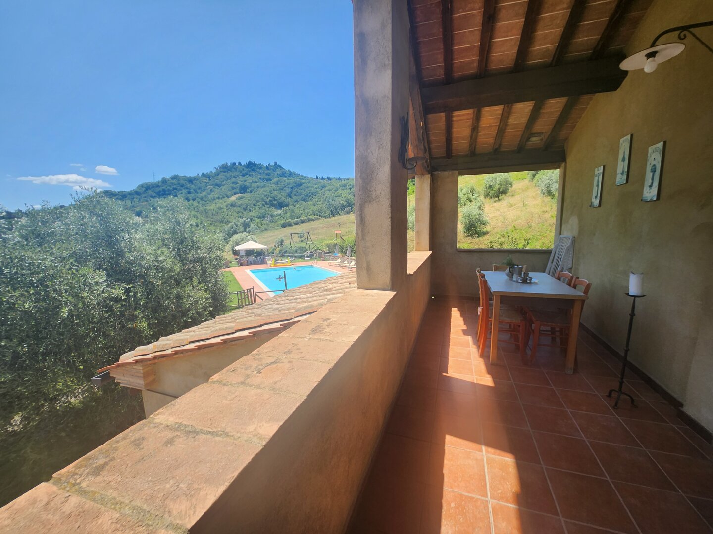 Built in a typical rustic Tuscan style the apt overlooks the garden, hills , pool and Volterra.
