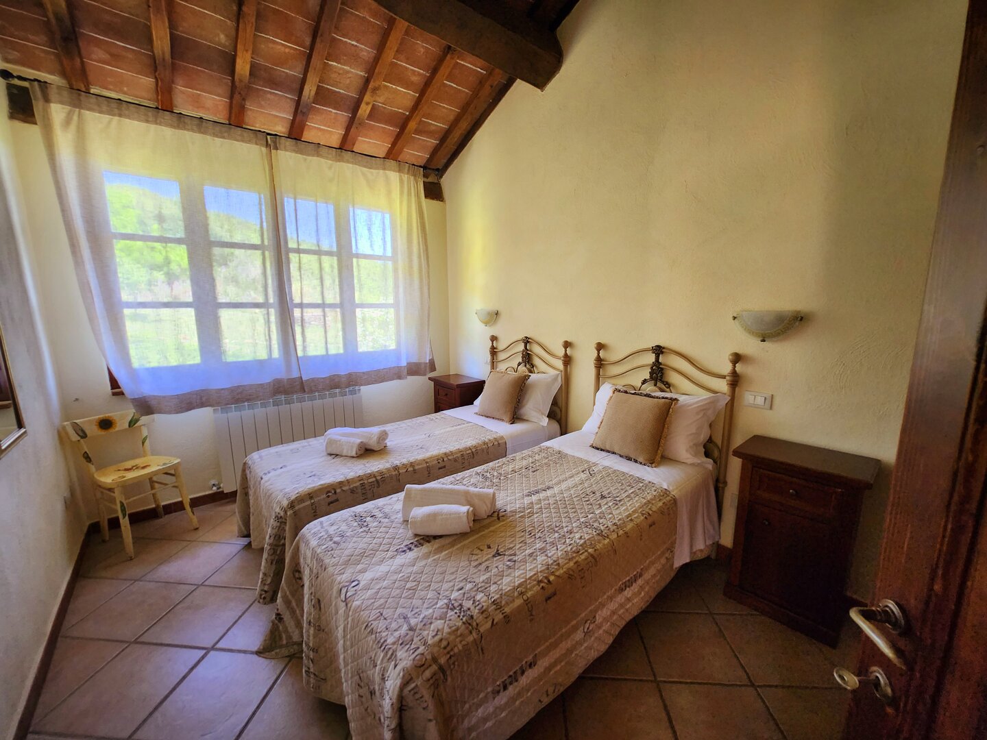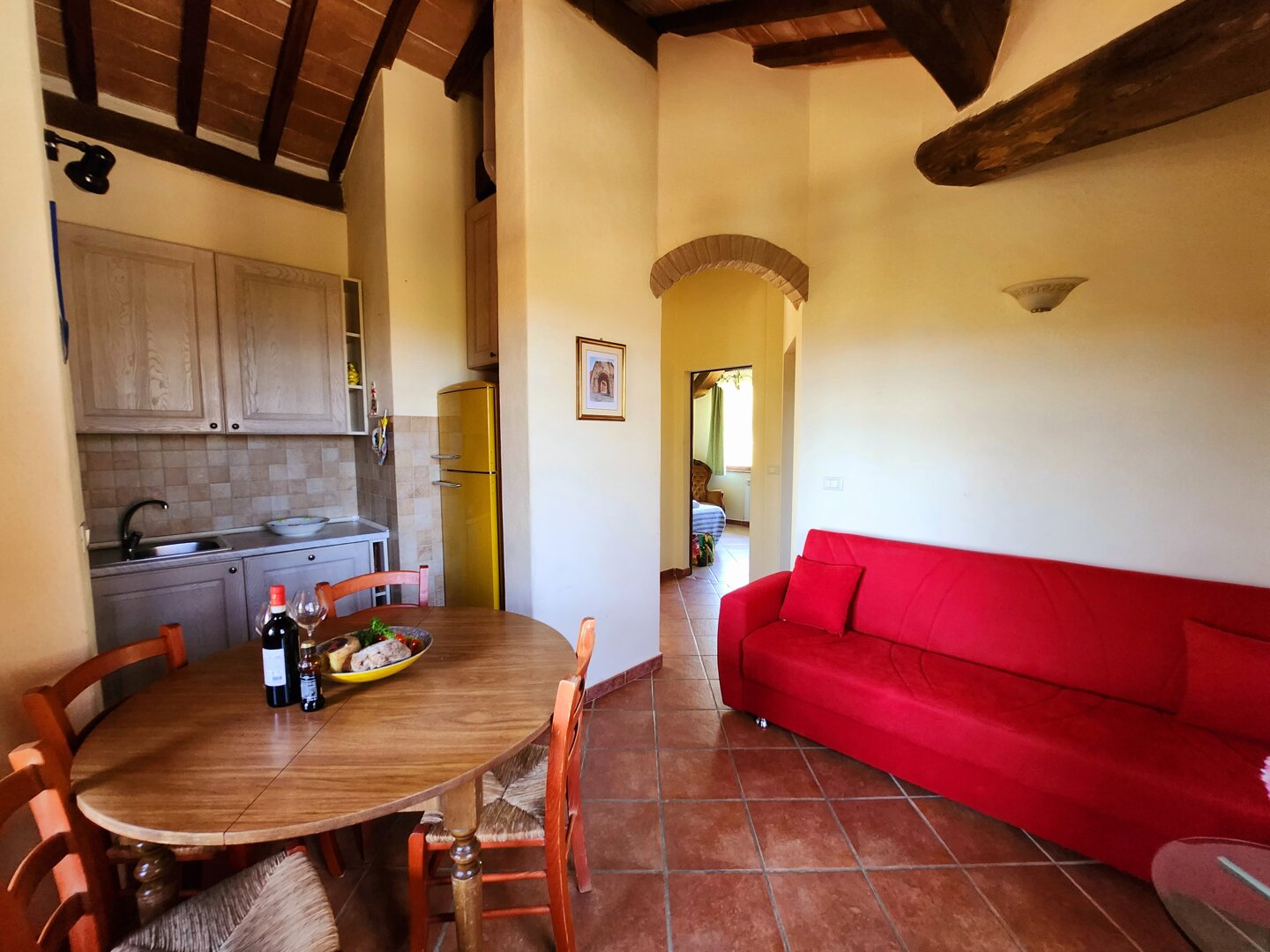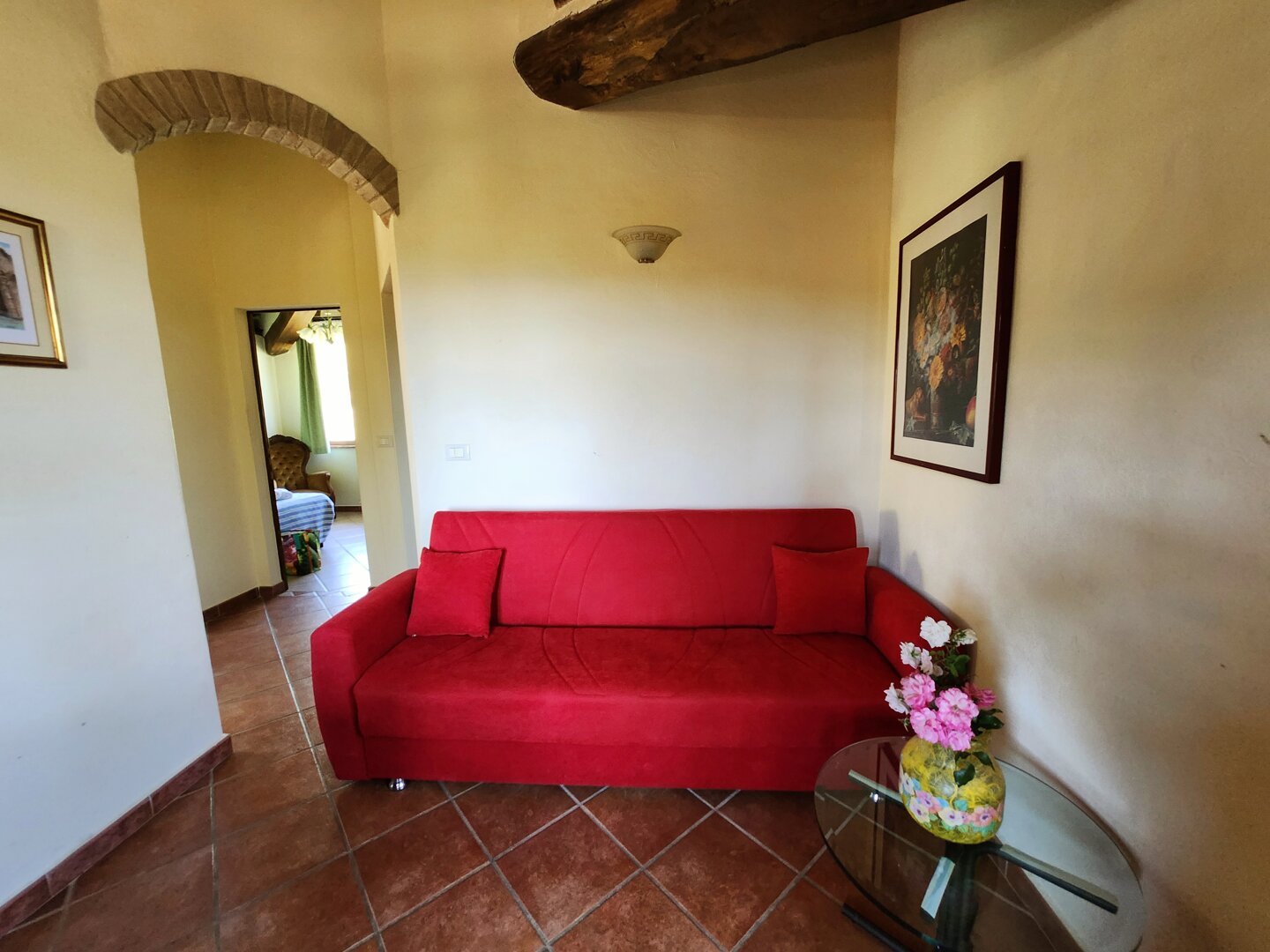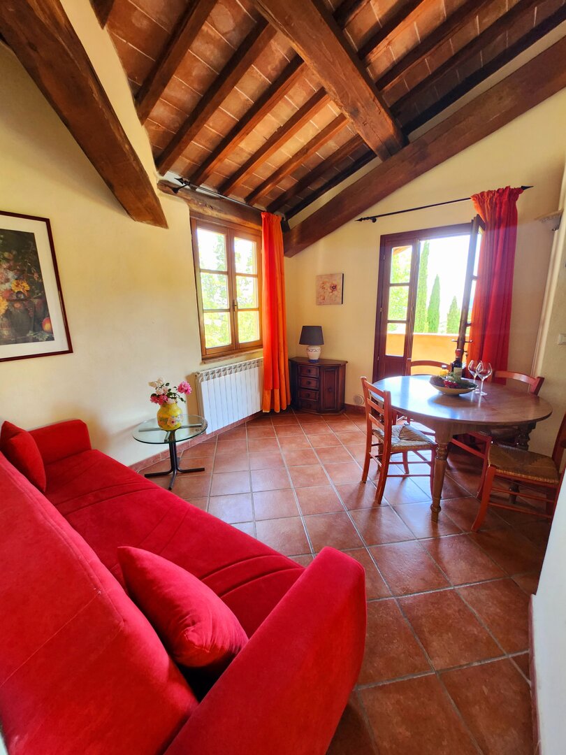 Built in a typical rustic Tuscan style the apt overlooks the garden, hills , pool and Volterra.